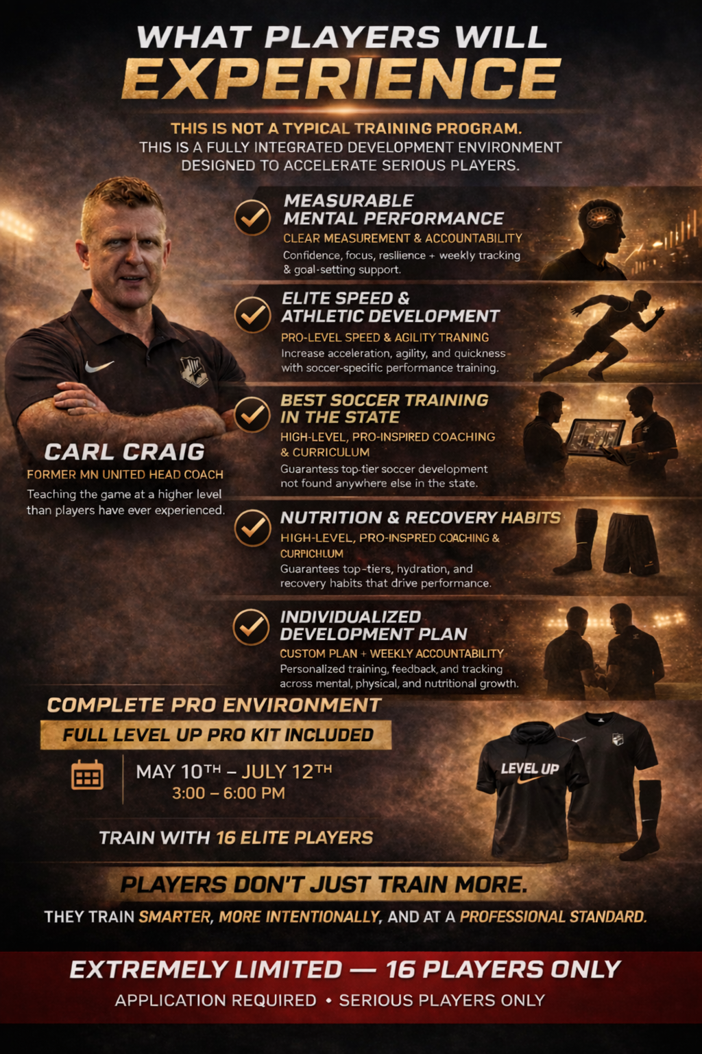 Level Up Pro Experience brings together expertise in coaching, performance, mental training, and nutrition that is rarely found in youth soccer.